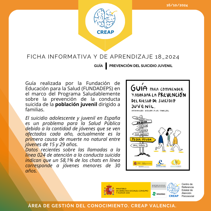 La guía está realizada por la Fundación de Educación para la Salud (FUNDADEPS) en el marco del Programa Saludablemente sobre la prevención de la conducta suicida de la población juvenil dirigido a familias.