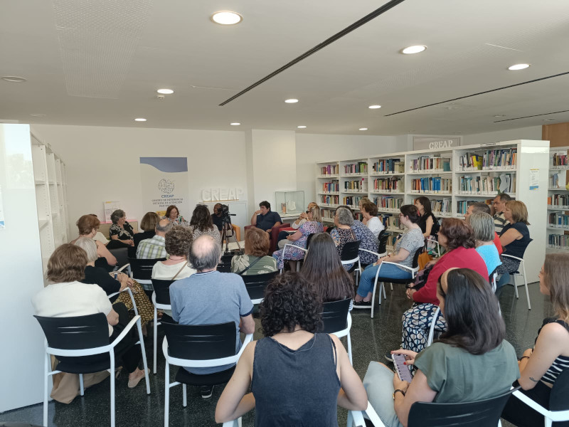Por su parte, Pepa Salavert presentó el trabajo de la Asociación José Luis Sampedro. Agradeció al Creap por acoger la jornada y explicó que, aunque la asociación nació en el Hospital La Fe en 2002, es totalmente independiente al hospital, y colabora con el Consejo de Salud. Su objetivo es organizar actividades socioculturales que ayuden a combatir la ansiedad, la tristeza y la soledad de las personas hospitalizadas y sus acompañantes, a quienes también se les da un papel protagonista. Entre sus actividades destacan conferencias, presentaciones de libros, tertulias literarias y celebraciones como el Día del Libro o el Día de la Mujer. Su actividad más emblemática son los concursos literarios, que permiten a pacientes y acompañantes compartir sus vivencias a través de la escritura.