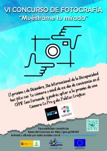Cada 3 de diciembre, en CRMF-IMSERSO de San Fernando, celebramos el Día Internacional de las Personas con Discapacidad abriendo las puertas a la comunidad educativa y otras instituciones relacionadas con las personas con diversidad funcional y justamente en este contexto es donde se ubica el VI Concurso de fotografía «Muéstrame tu mirada», cuyo hashtag o etiqueta para esta convocatoria será #MuéstrameTuMirada17